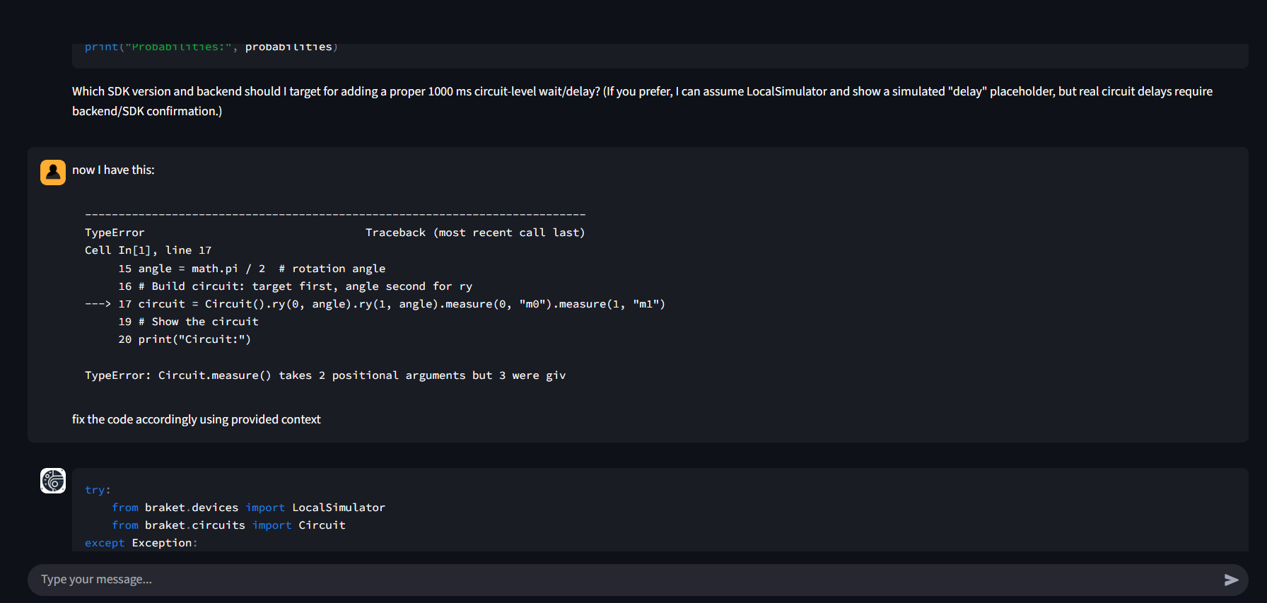 Generate complete quantum circuits and code (for Braket, Qiskit, etc.)
